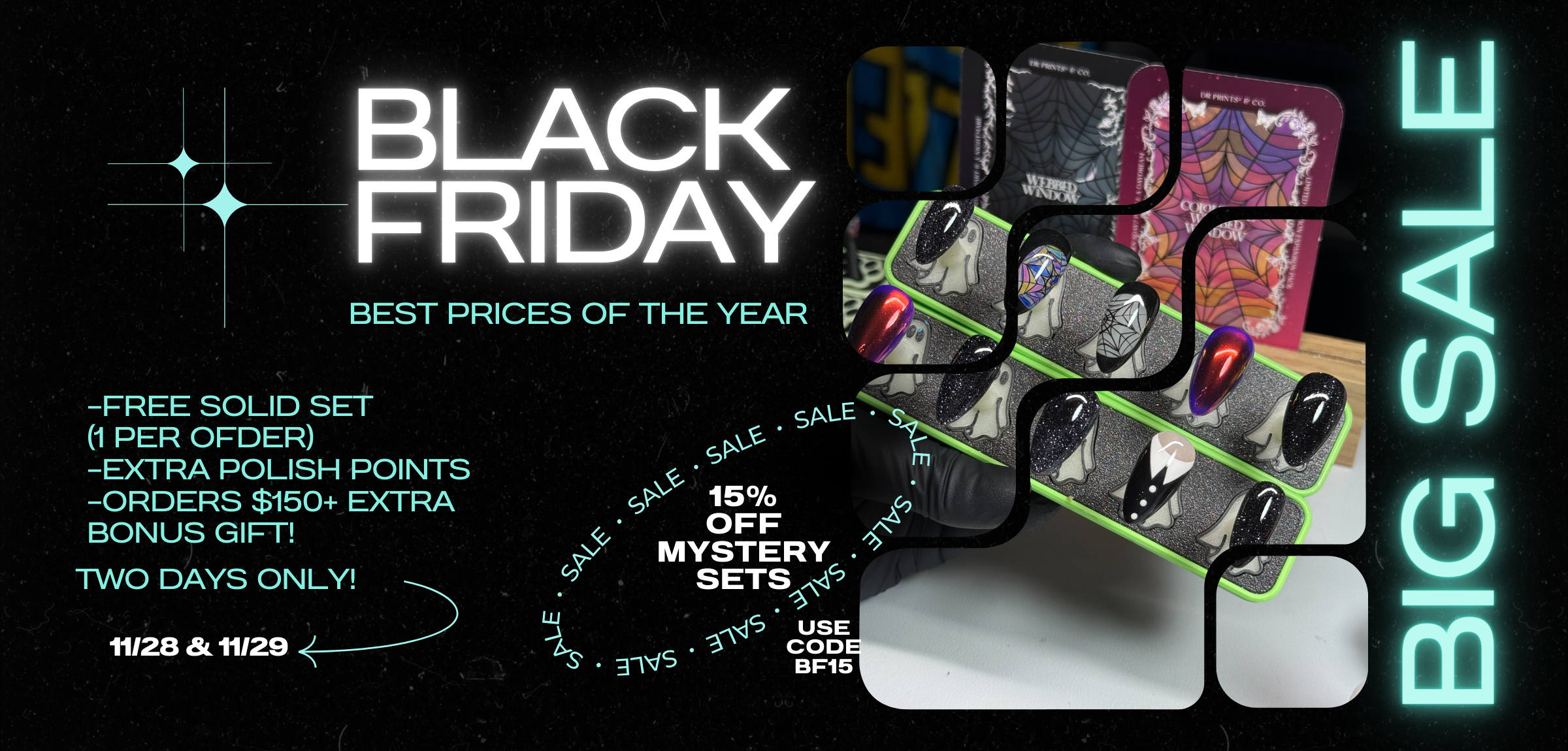 I ordered the mystery set with surprise me. I love the nails. Green and some have leaves and others have plaid. The look changes depending on the angle. I love it.